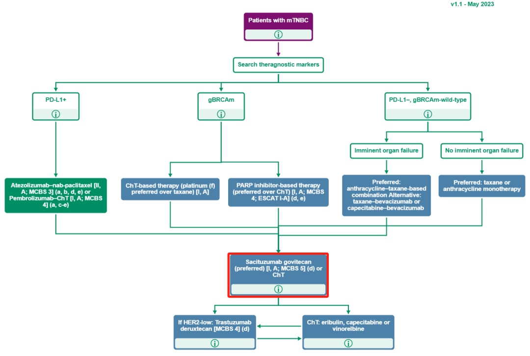 图2.《ESMO指南》推荐SG用于mTNBC二线治疗