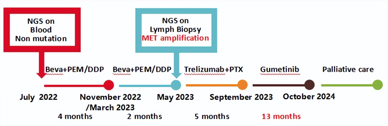 2024年10月复查出现PD,后因患者病情迅速恶化进入肿瘤姑息治疗。该患者的全部诊治经过如图4所示。