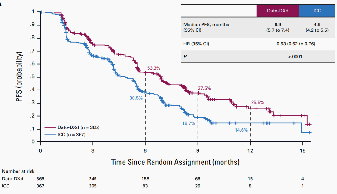 [4]Bardia A,Jhaveri K,Im SA,et al.Datopotamab Deruxtecan Versus Chemotherapy in Previously Treated Inoperable/Metastatic Hormone Receptor-Positive Human Epidermal Growth Factor Receptor 2-Negative Breast Cancer:Primary Results From TROPION-Breast01.J Clin Oncol.Published online September 12,2024.doi:10.1200/JCO.24.00920