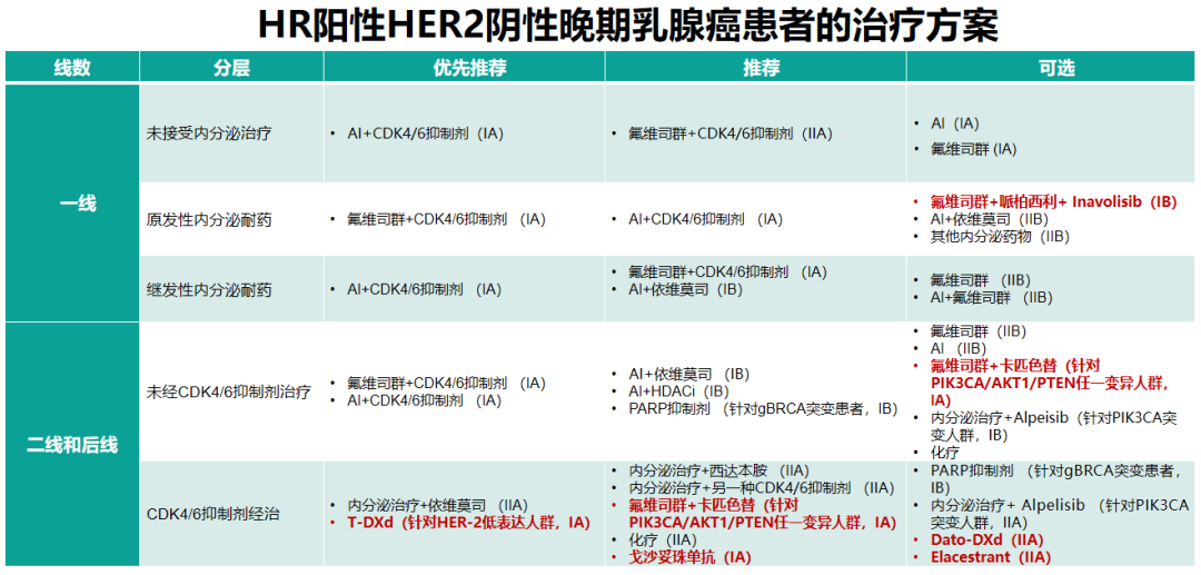 △《中国晚期乳腺癌规范诊疗指南(2024)》:HR+/HER2-晚期乳腺癌患者的治疗方案