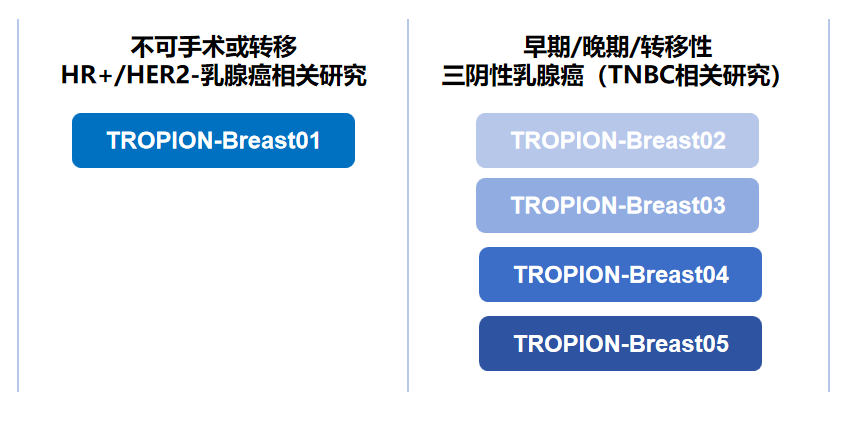 总之,TB-01研究的结果表明,无论是全球人群还是中国人群,Dato-DXd用于经治的HR+/HER2-晚期乳腺癌患者,能够显著改善PFS,有效延缓疾病进展,且治疗安全性整体上优于传统化疗。珠玉在前,怀璧其后。相信随着Dato-DXd首个乳腺癌适应症在日本获批,其在中国、美国乃至全球其他国家和地区的获批也将接踵而至,造福全球更多乳腺癌患者。有关Dato-DXd更多的治疗应用也正在开展研究中,期待未来能够产生更多改变临床实践的研究成果。