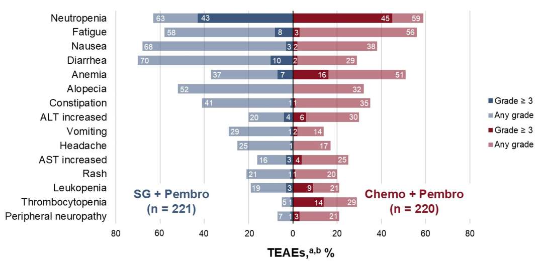 [2]Sara M.Tolaney,et al.Sacituzumab govitecan(SG)+pembrolizumab(pembro)vs chemotherapy(chemo)+pembro in previously untreated PD-L1–positive advanced triple-negative breast cancer(TNBC):Primary results from the randomized phase 3 ASCENT-04/KEYNOTE-D19 study.2025 ASCO LBA 109.