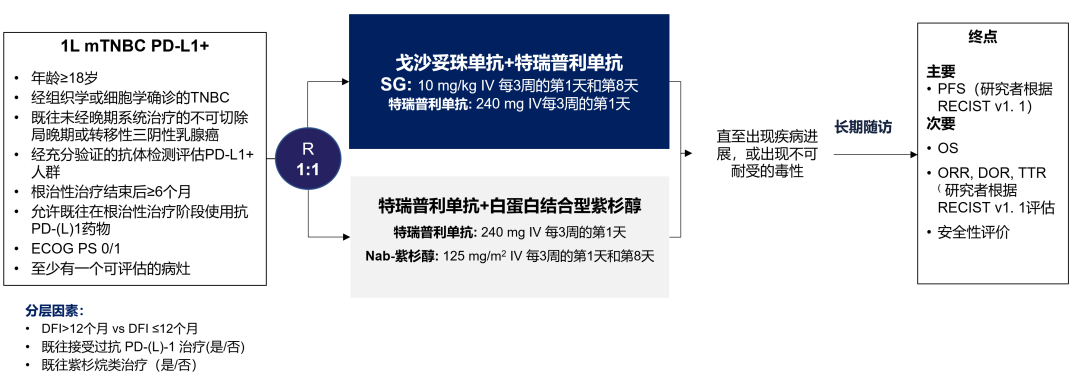 该研究是首次证实了ADC联合免疫治疗方案可一线应用于TNBC的Ⅲ期临床研究,为TNBC一线治疗带来了新的选择。