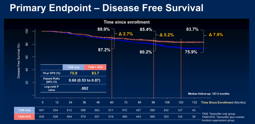 对于绝经前早期乳腺癌患者OFS的使用,此次ASCO大会上多项研究数据进行了更新。例如,SOFT&TEXT研究15年生存数据更新,ASTRRA研究10年DFS数据更新。这些研究更新的数据表明,长期随访下,使用OFS的患者疗效持续存在,进一步坚定了我们对早期乳腺癌患者强化治疗的信心。不过,无论情况如何,对于早期HR+/HER2-乳腺癌,我们的治疗目标始终是治愈。