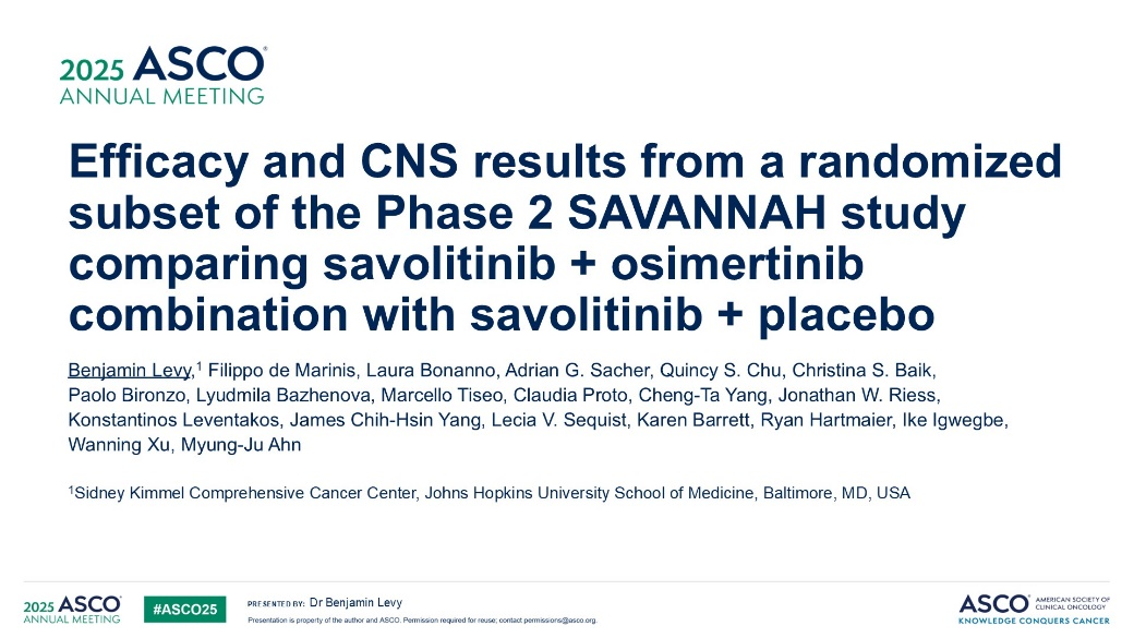 来自约翰霍普金斯大学的Bengamin教授报道了赛沃替尼联合奥希替尼用于治疗奥希替尼耐药且携带MET基因异常的晚期非小细胞肺癌患者的疗效及安全性,该研究结果同步发表于《肿瘤学年鉴》杂志。