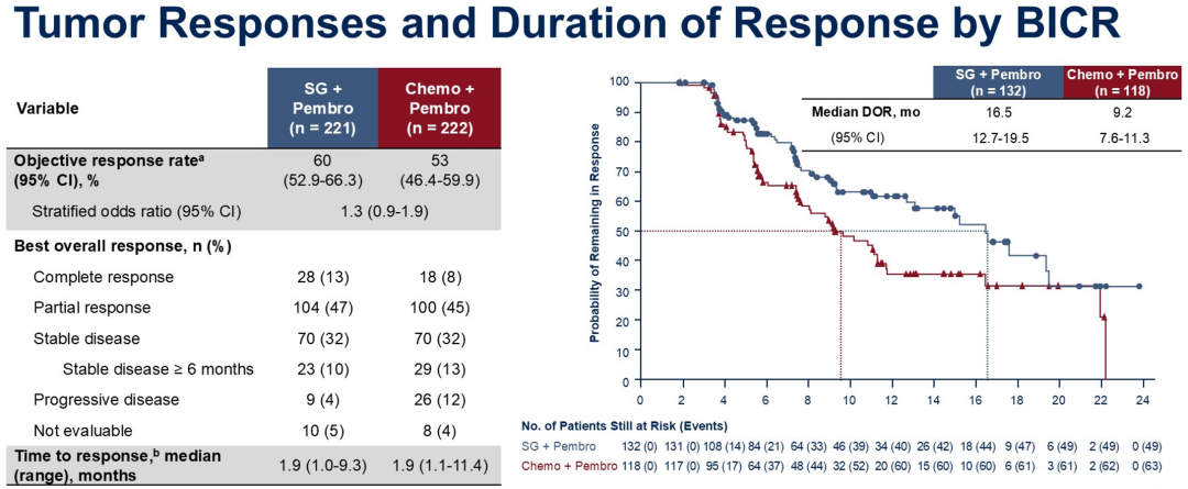 此外,我们还需关注内脏、脑转移等远处转移病灶的缓解情况。ASCENT-04研究均纳入了这些患者,但目前尚未公布相关亚组数据。从既往其他研究及SG药物特征来看,其载荷SN-38不仅活性高,而且可能也具备通过血脑屏障的能力。因此,在内脏或脑转移疾病控制方面的疗效应该也不会差。