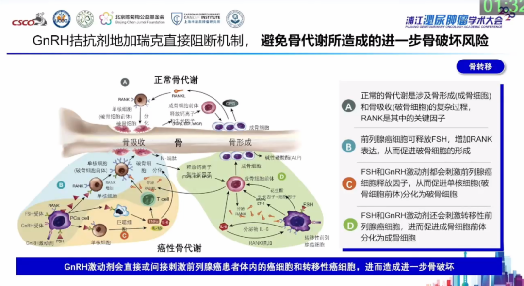 值得注意的是,ADT治疗中的传统受体激动剂在短时间内可能导致睾酮水平升高,引发“肿瘤一过性恶化(flare-up)”现象,加重骨痛甚至诱发截瘫,对于存在脊柱转移的患者风险尤高。相较之下,受体拮抗剂类药物(如GnRH拮抗剂地加瑞克)则可直接降低睾酮,避免“flare-up”效应,并能持续降低碱性磷酸酶水平,从而更好地降低疾病进展和骨骼相关不良事件的风险,同时也在快速改善患者下尿路症状和疼痛方面表现出色。