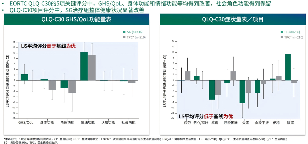 图3.TROPiCS-02研究中SG可较化疗更好地保持或改善患者生活质量