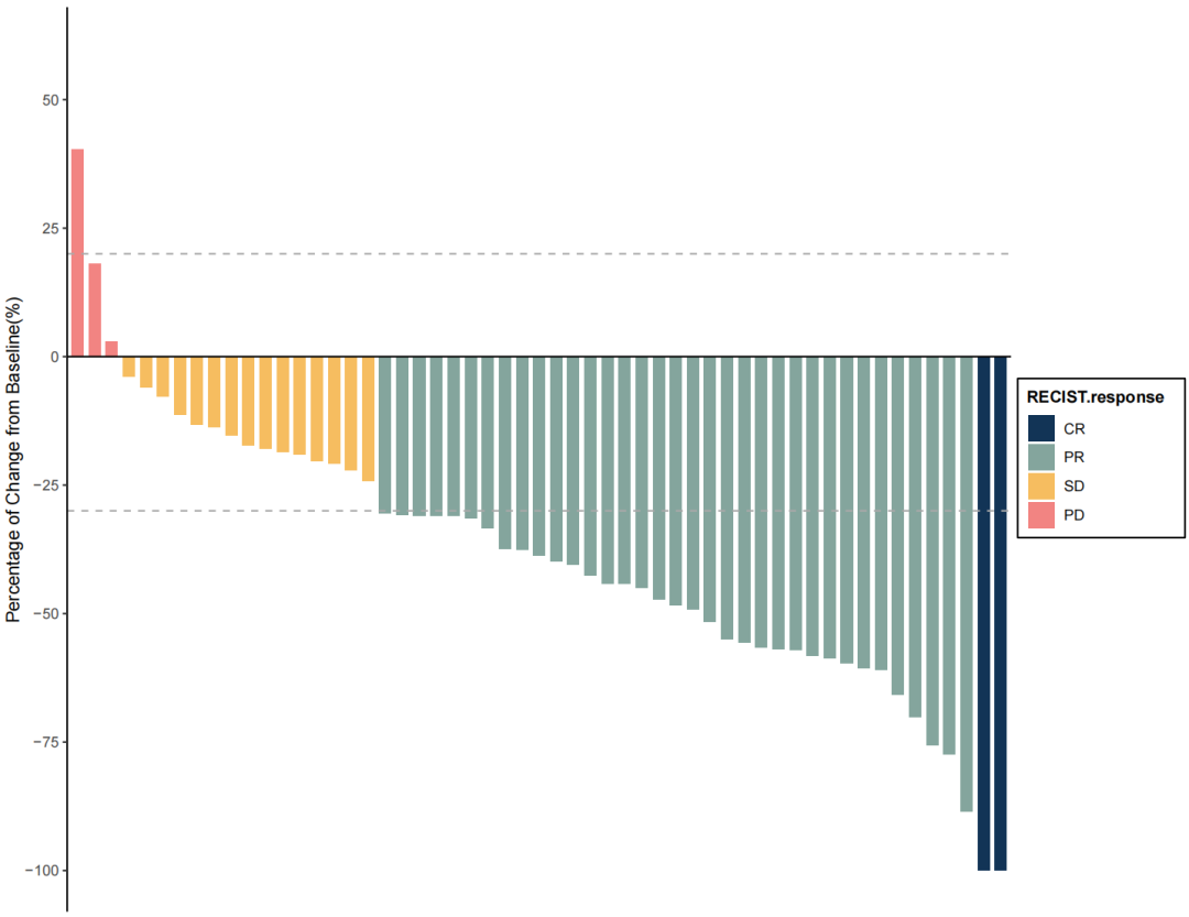 Atezo-Bev联合TACE-HAIC治疗的患者靶病灶大小相对于基线的最佳变化百分比