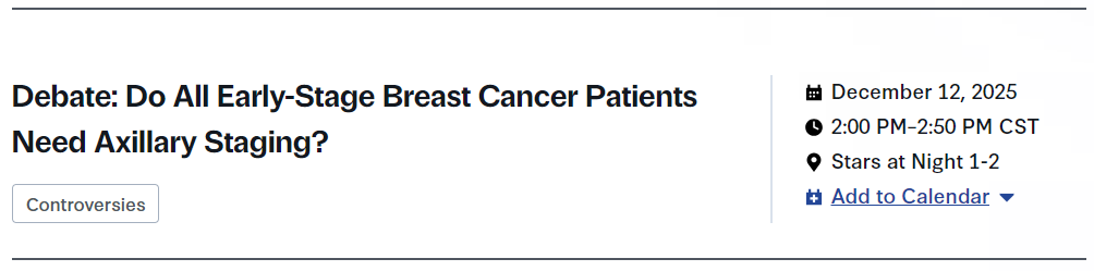 同时,今年会议还设置了关于早期乳腺癌患者是否都需要腋窝分期的辩论环节,以及众多展示乳腺癌研究与治疗最新进展的其他分会场。