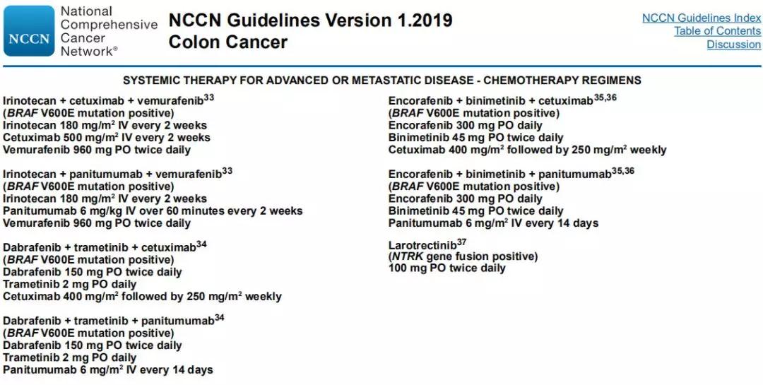 图3. 晚期/转移性肠癌系统治疗(NCCN结肠癌指南 2019.V1)