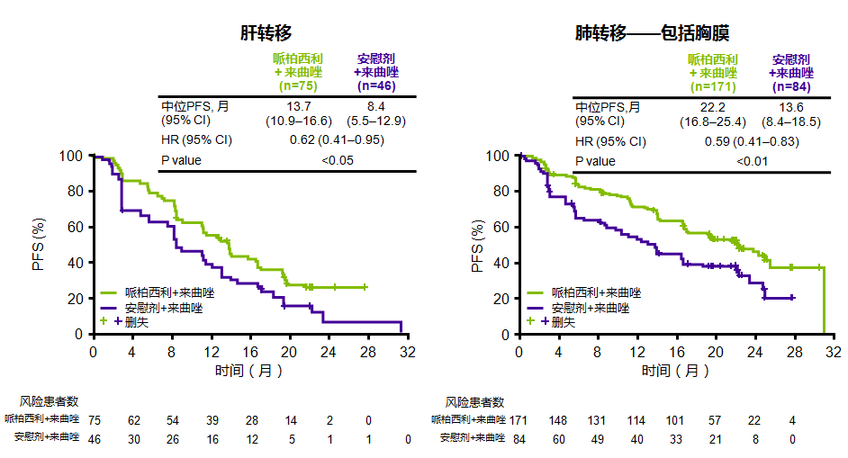 PALOMA-2 肝转移或肺转移人群的PFS获益