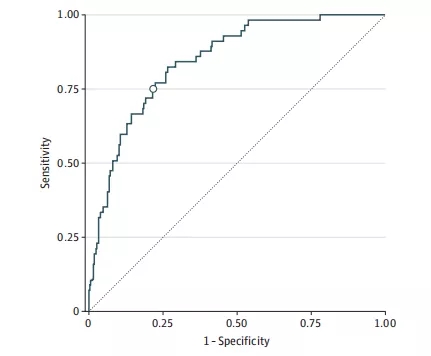 图1. 对于听力损失≥35 dB的患者而言,该预测模型的敏感度与特异度分别可达80%