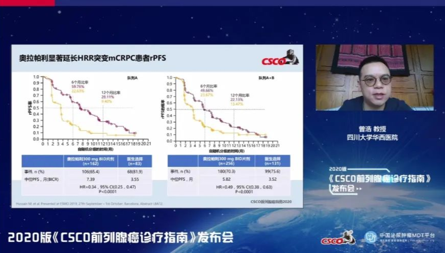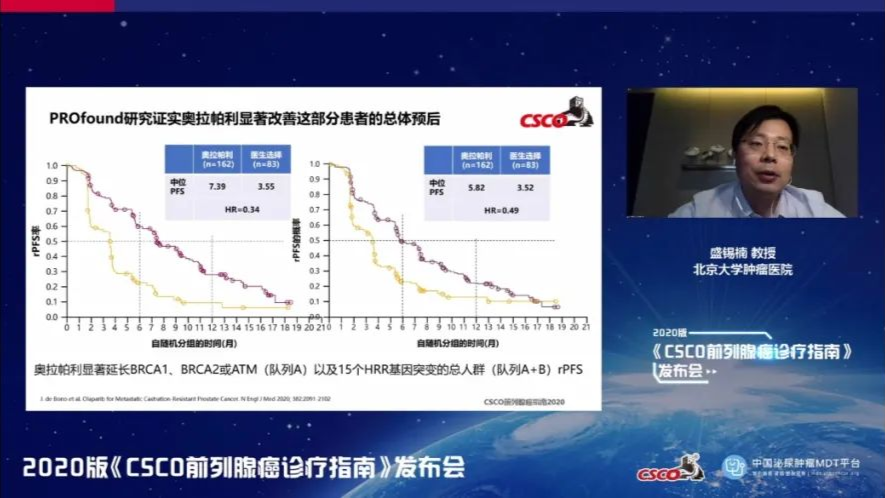 四川大学华西医院的曾浩教授分享了“前列腺癌基因检测和液体活检”以及“前列腺癌的随访”这两个章节,综合了国内外共识指南、最新发表的前列腺癌分子特征以及精准治疗相关研究数据,规范和指导了前列腺癌基因检测的检测对象、检测内容、检测技术、数据处理及解读,并强调了III期临床研究PROfound证实具有同源重组修复基因突变的患者,能够从奥拉帕利治疗中获益。