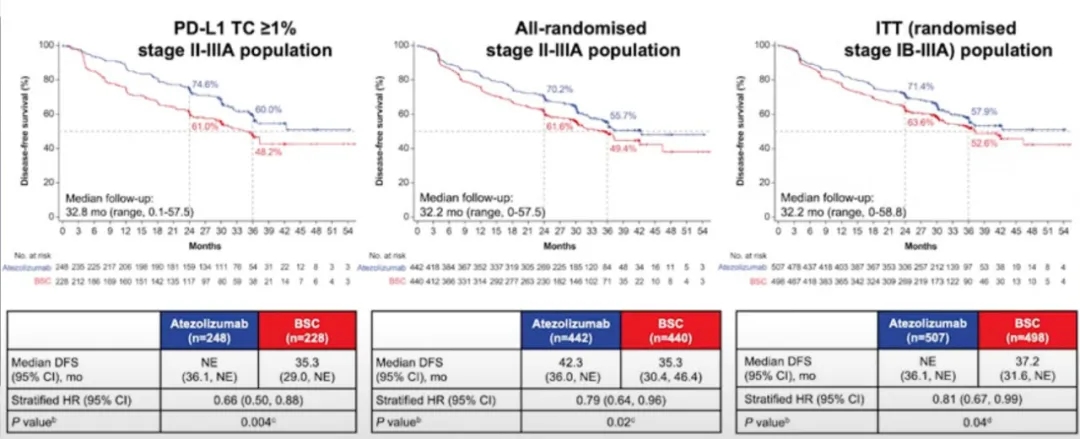 PD-L1≥1% II-IIIA期人群、所有随机II-IIIA期和ITT人群的DFS