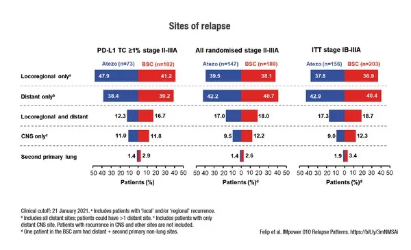 2. Felip E et al. IMpower010: patterns of relapse and subsequent therapy from a Phase III study of atezolizumab vs best supportive care(BSC) after adjuvant chemotherapy(chemo) in stage IB-IIIA non-small cell lung cancer(NSCLC). ESMO Congress 2021, Abstract LBA9