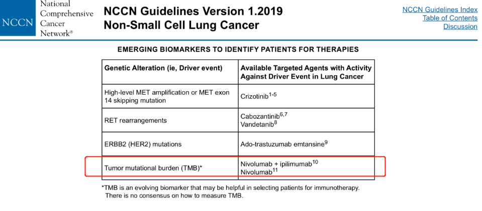 然而,CheckMate-227研究才是首个证实TMB可作为免疫治疗效果预测标志物的III期研究,在TMB-H(≥10个突变/Mb)的非小细胞肺癌(NSCLC)患者中,双免疗法NIVO+IPI(纳武利尤单抗+伊匹单抗)一线治疗可使1年PFS率提高2倍多(42.6% vs. 13.2%)。另一项II期CheckMate-568研究也显示,TMB≥10个突变/Mb相较于TMB<10个突变/Mb,应用双免一线治疗NSCLC可以使PFS延长2倍(7.1 vs 2.6个月)。基于此,2019年的NCCN指南推荐TMB-H的NSCLC患者可选择NIVO+IPI或NIVO免疫疗法。