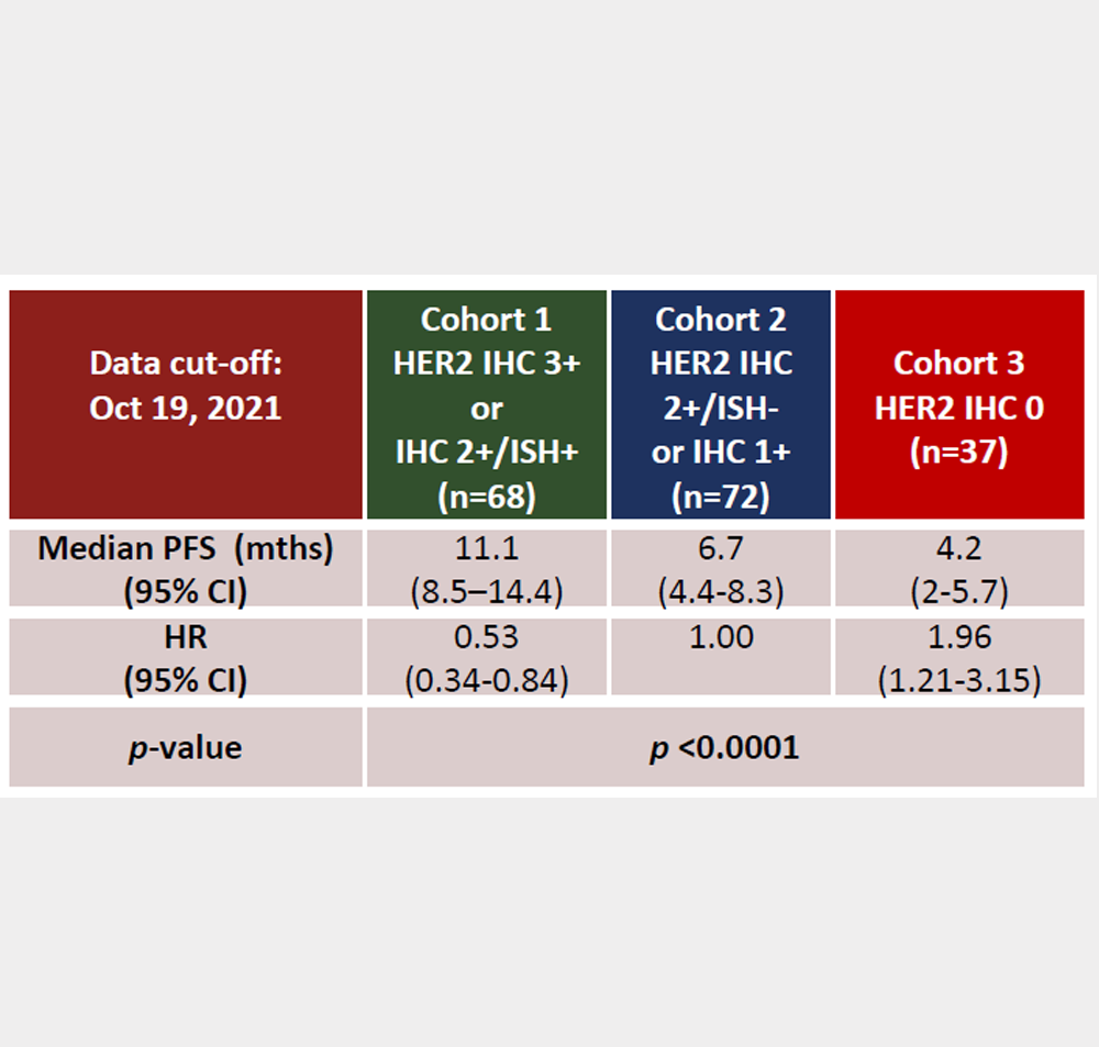 [9] Mosele MF, et al. Unraveling the mechanism of action and resistance to trastuzumab deruxtecan (T-DXd): biomarker analyses from patients from DAISY trial. ESMO Breast Cancer 2022, Abstract LBA1