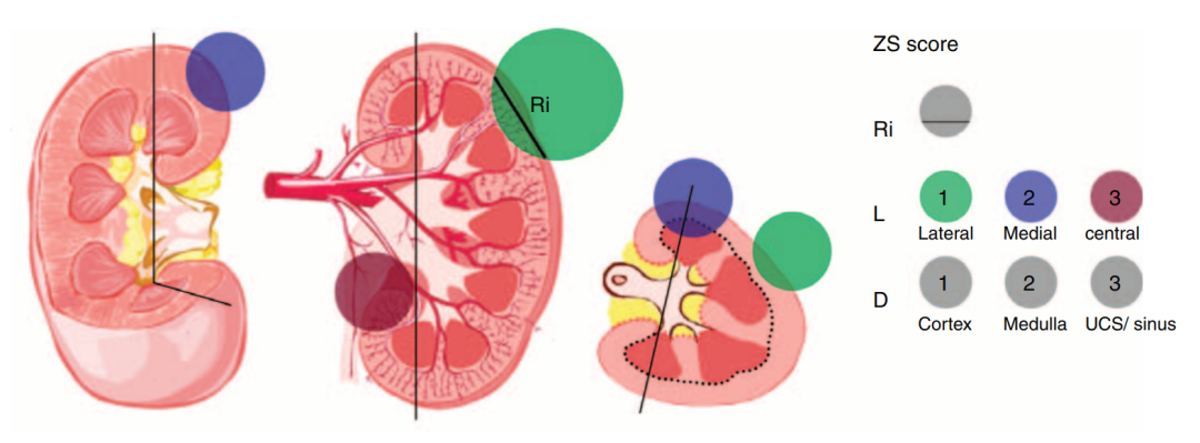 鉴于此,我们团队通过学习相关经验,基于庞大的肾癌数据库以及多年的手术经验,提出了中山评分系统的方案。该评分系统以肾内最大肿瘤直径(Ri)为评价核心,并评估肿瘤位置(Loation)和肿瘤深度(Depth)等指标。评分越低代表手术时间短,出血量少,并发症少,复发率低,避免了国外比较粗浅的分类方式,证明了我们的评分系统的科学性,得到了国际上的广泛认可。