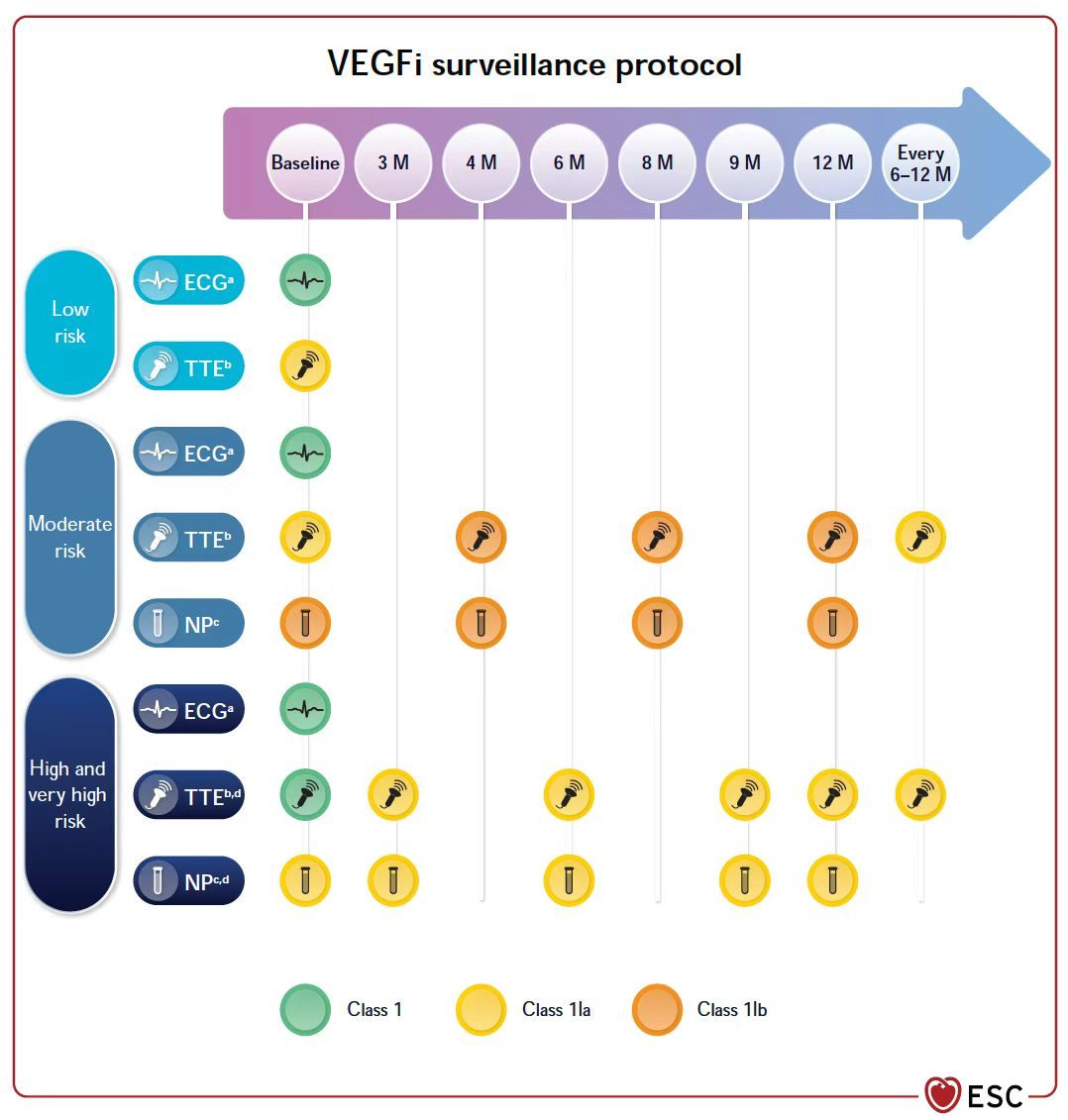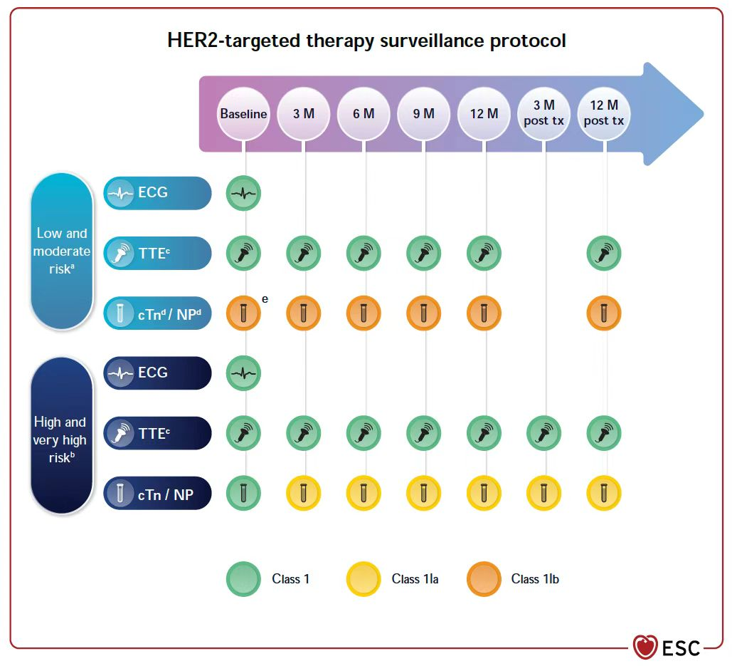 在抗肿瘤治疗期间提供详细的监测途径,包括三维超声心动图、GLS和心脏生物标志物,以检测基于特定抗肿瘤治疗和基线心血管毒性风险。