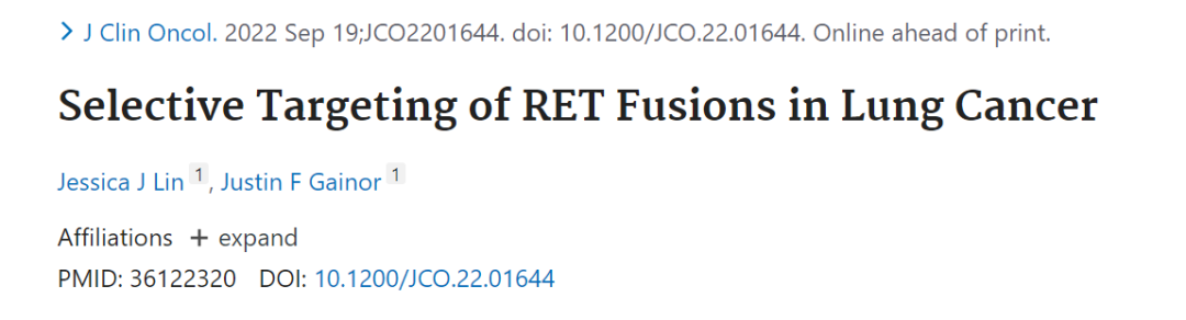 Selpercatinib治疗RET融合阳性非小细胞肺癌患者更新后的疗效及安全性:来自LIBRETTO-001研究的更新数据