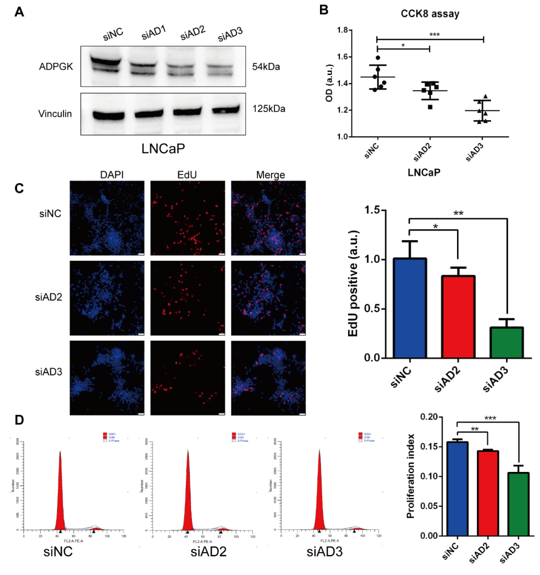 ADPGK敲低抑制了前列腺癌细胞的增殖活力(图2)。