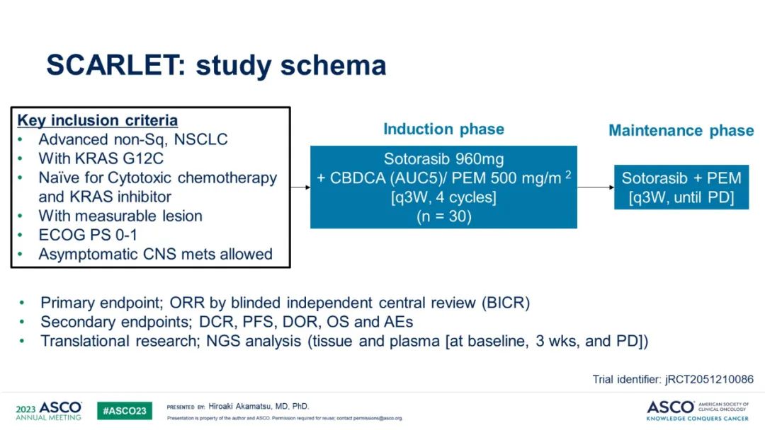 II期SCARLET主要终点分析:Sotorasib+卡铂/培美曲塞治疗KRAS G12C突变晚期非鳞状非小细胞肺癌(WJOG 14821 L)