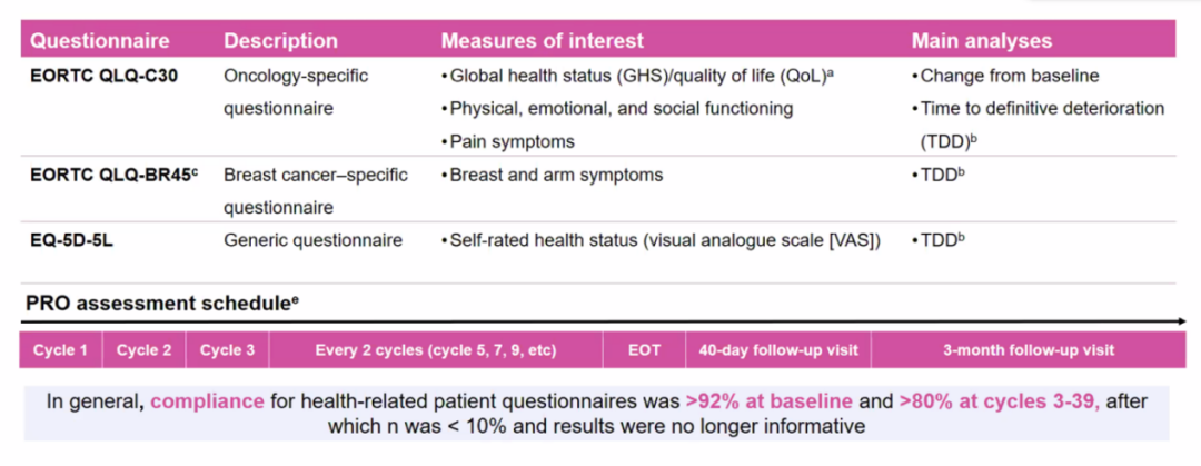 肿瘤瞭望:您对DESTINY-Breast02研究的患者报告结局进行了介绍,请您回顾讲课内容,为我们介绍一下,该研究从哪些方面对患者进行了评估?