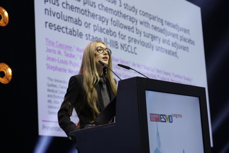 研究作者Tina Cascone报告CheckMate 77T试验数据