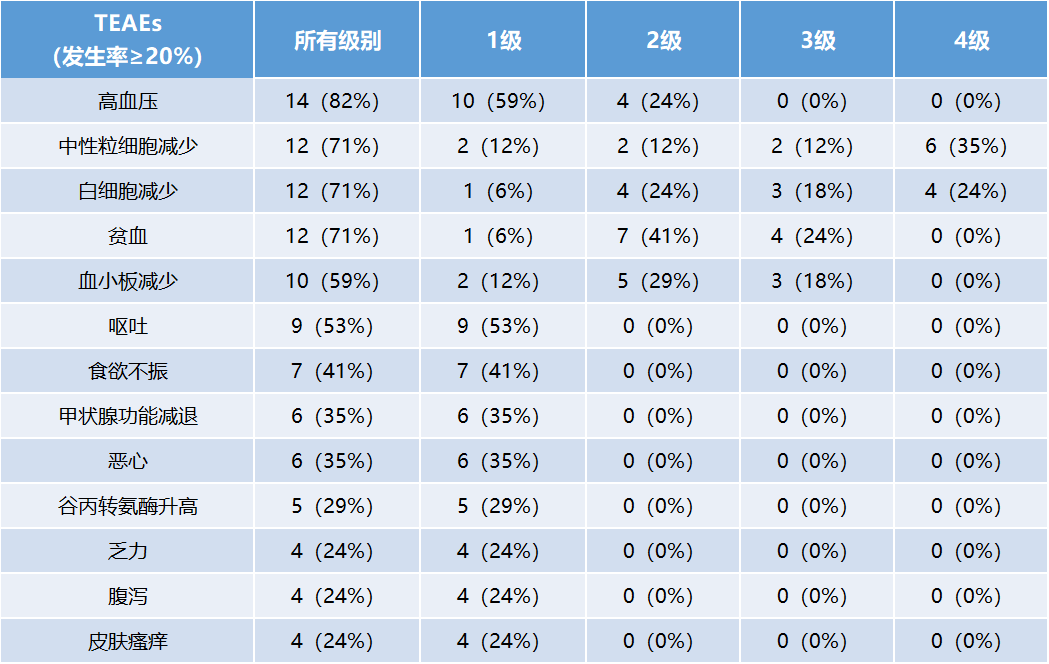 2022年11月至2024年1月期间,共有22例患者入组,其中有17例患者完成新辅助治疗并进行了手术。在这17例可评估疗效患者中,中位年龄为51岁(范围为32-69岁),II期占76.5%,淋巴结阳性占52.9%。17例患者中观察到10例达到pCR(58.8%;95%CI:32.9%-81.6%)、12例患者达到RCB 0-1(70.6%;95%CI:44.0%-89.7%)。亚组分析显示,基线淋巴结未受累患者的pCR(75.0%;6/8)高于淋巴结受累患者(44.4%;4/9)。术前ORR和DCR分别为82.4%(95%CI:56.6%-96.2%)和88.2%(95%CI:63.6%-98.5%)。安全性分析显示,治疗期间出现的任意级别不良事件(TEAEs)发生率为100%,其中≥3级TEAEs发生率为58.8%。最常见的≥3级TEAEs主要为中性粒细胞减少(47.1%)、白细胞减少(41.2%)、贫血(23.5%)和血小板减少(17.6%)。免疫相关不良事件(irAEs)的发生率为35.3%,均为1级甲状腺功能减退。